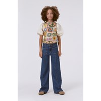 Veelkleurige top met een print van haakpatronen met witte pofmouwen in een katoenen popeline. De print toont Molo's eigen interpretatie van de haaktrend in dit bedrukte haakpatroon. Zoek naar regenbogen, smiley’s, paddenstoelen, zonnebloemen en vredestekens. Dit kan je inspireren om je haaknaalden tevoorschijn te halen en je eigen patronen in verschillende kleuren te maken. Deze top is van 100% katoen, heeft een ronde hals met ribboord, korte pofmouwen en een normale pasvorm.