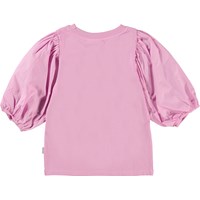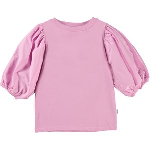 Rica is een roze top van biologisch katoen met pofmouwen in popeline. De mouwen hebben elastiek aan de onderkant om het pof effect te benadrukken.