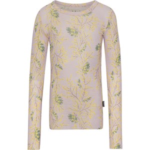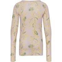 Lichtpaarse top van de allermooiste en zachtste merinowol met een print. De print heeft mooie gele mimosa bloemen. Deze top is gemaakt van 100% merinowol, de perfecte extra warme laag op koude dagen. De top heeft lange mouwen, een ronde hals en is slim fit.