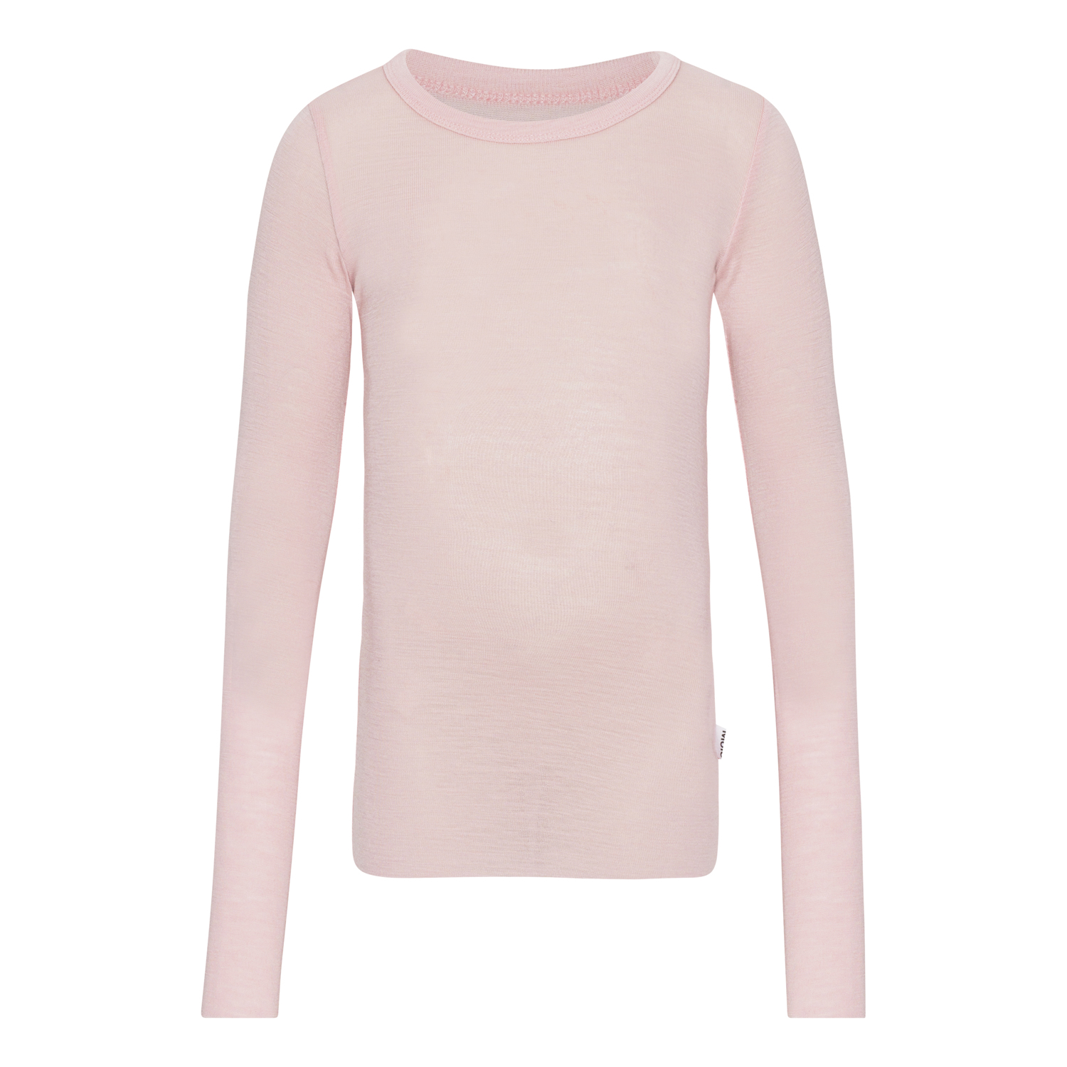 Lichtroze top van de allermooiste en zachtste merinowol. Deze top is gemaakt van 100% merinowol, de perfecte extra warme laag op koude dagen. De top heeft lange mouwen, een ronde hals en is slim fit.