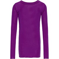 Paarse trui met lange mouwen van merinowol in een aansluitende pasvorm met ronde hals en overlock boorden rond de mouwen en onderkant van de trui. Combineer het met een legging in dezelfde kleur voor een complete set.
