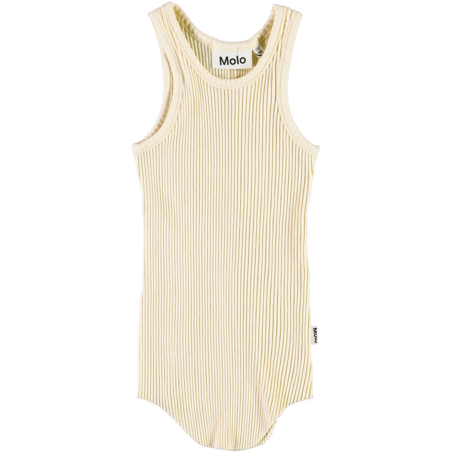 Roberta is een lichtgeel rib hemdje dat aan de zijkanten iets korter is.