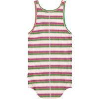 Kleurrijke gestreept hemdje van zacht biologisch katoenen ribstof met ronde hals. De top heeft een aansluitende pasvorm, brede bandjes en een ronde onbewerkte boord aan de onderkant.