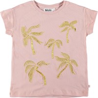 Robine is een roze t-shirt met geborduurde gouden palmbomen die je helpen dromen over de magie van het Verre Oosten.