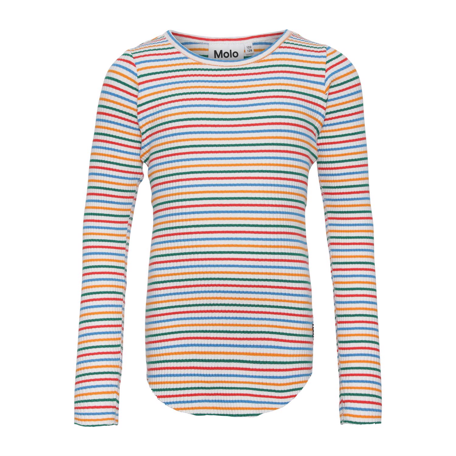 Rochelle is het perfecte shirt in een prachtige rib waar je geen genoeg van kunt krijgen. Het is in veelkleurige regenboogstrepen en heeft duimgaten
