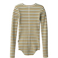 Gestreepte longsleeve gemaakt van rekbaar biologisch katoenen ribstof in een aansluitende pasvorm met een ronde hals en onbewerkte boorden rond de mouwen met duimgaten. Daarnaast heeft de longsleeve een verticale naad in het midden van de rug en een onbewerkte afgeronde boord rond de taille.
