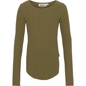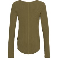 Rochelle is een legergroene rib top met lange mouwen. Het is iets langere aan de voor- en achterkant en heeft onafgewerkte randen aan de mouwen en onderkant. Rochelle heeft een slanke pasvorm waardoor het perfect is om alleen of onder een andere stijl te dragen.
