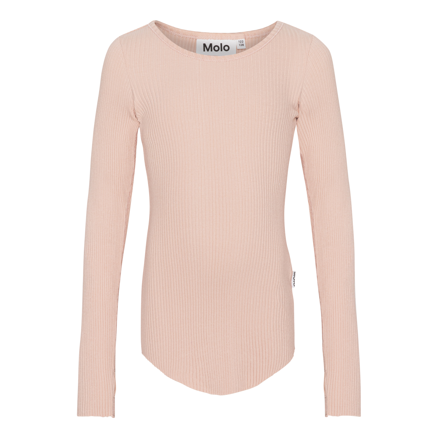 Rochelle is een zachtroze rib top met lange mouwen. Het is iets langere aan de voor- en achterkant en heeft onafgewerkte randen aan de mouwen en onderkant. Rochelle heeft een slanke pasvorm waardoor het perfect is om alleen of onder een andere stijl te dragen.