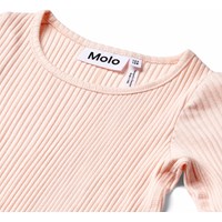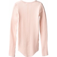 Roze longsleeve gemaakt van rekbaar biologisch katoenen ribstof in een aansluitende pasvorm met een ronde hals en onbewerkte boorden rond de mouwen met duimgaten. Daarnaast heeft de longsleeve een verticale naad in het midden van de rug en een onbewerkte afgeronde boord rond de taille.