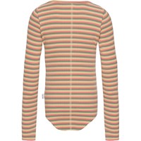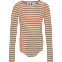 Een echte Molo-klassieker in een spannende nieuwe versie. Dit is een top met lange mouwen met duimgaten en smalle strepen in koraal, groen, geel en paars. Het is van 100% katoenen jersey, heeft lange mouwen met duimgaten, een ronde hals en is slim fit. Dit is de perfecte top die alleen kan worden gedragen of kan worden gecombineerd met een trui of een jas eroverheen.