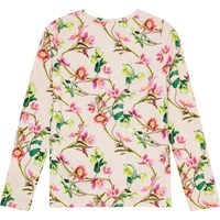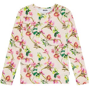Aansluitende longsleeve van biologisch katoen met een ronde hals. De longsleeve heeft een print van kerstrozen in witte en lichtroze tinten, die sierlijk verstrengelen met hun groene bladeren.