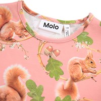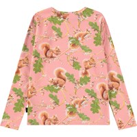 Roze longsleeve gemaakt van biologisch katoen met een ronde hals en mooie afgewerkte boord. De longsleeve zit aanlsuitend en heeft een print van eekhoorns die op eiken takken zitten.