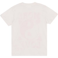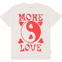 Witte t-shirt van biologisch katoen met een print van een Yin Yang symbool met hartjes en de tekst 'More Love'. Het t-shirt heeft een ronde hals en een normale pasvorm.
