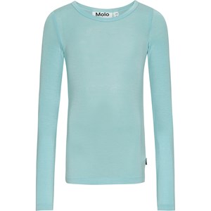 Lichtblauwe longsleeve van zachte viscose, in een aansluitende pasvorm en een ronde hals. Geschikt om onder een trui, vest, gilet of gebreide kleding te dragen.
